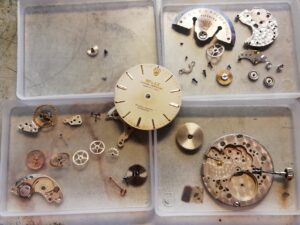 現品到着後、2週間以内に1点1点の部品の状態を8割程度慎重かつ入念に精査した上で概算のお見積り金額をお電話、又は「ご依頼の時計の概算お見積りのご報告」というタイトルでメールにてご報告をいたします。 ご提示しました修理内容と概算の修理料金に付いて、ご承諾をいただけましたら、修理を開始いたします。なお、この時点でキャンセルの場合でもキャンセル料はかかりません。その場合は1週間以内に組戻しを行い、着払い便(返送料お客様負担)にてご返送いたします。この点は悪しからずご了承ください。それと時計修理上の注意点として、部品調達不可や当店側の諸事情などにより修理をお断りせざるを得ない場合がございます。この点はご理解ください。