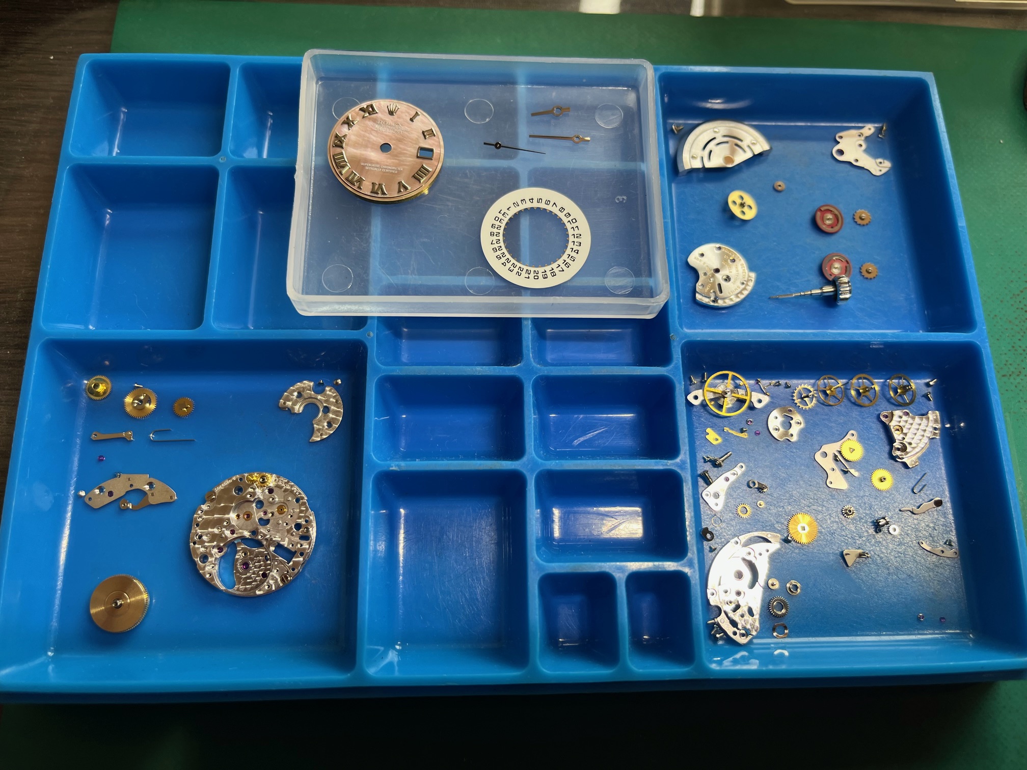 投稿日: 2026年4月14日カテゴリー: 修理実績 岡山の時計修理店「ウオッチ職人」です。本日はロレックスのオーバーホールをさせていただきました。 メーカー名:ロレックス サブタイトル1:デイトジャスト ライトパープルシェル シルバーローマンインデックス サブタイトル2:18KWGベゼル SS レディ-ス 種別:自動巻 キャリバー:2235 作業内容:オーバーホール 修理料金:25,000円 ロレックス デイトジャスト ライトパ-プルシェル SS レディ-ス 自動巻 2235 オ-バ-ホ-ル 投稿ナビゲーション ロレックス オイスタ-パ-ペチュアル シルバー SS レディ-ス 自動巻 2230 オ-バ-ホ-ルロレックス デイトジャスト ホワイト コンビ メンズ 自動巻 3135 オ-バ-ホ-ル